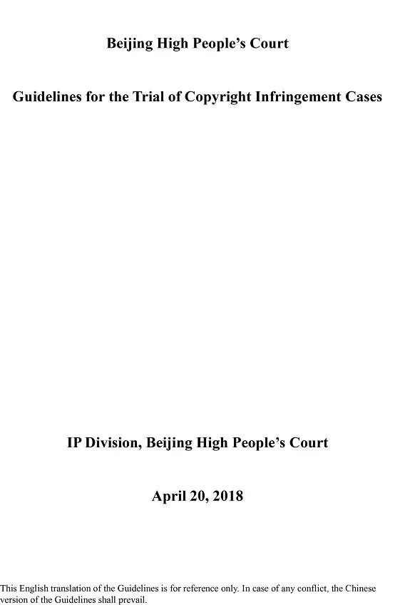 为贯彻执行两办《关于加强知识产权审判领域改革创新若干问题的意见》,提升北京法院著作权审判的质量和效率,推动首都文化产业的发展和创新,北京市高级人民法院总结整理以往涉及侵害著作权案件的各项指导文件,并梳理汇总实践中的各类问题,形成了《北京市高级人民法院侵害著作权案件审理指南》,并于2018年4月20日正式对外公布。